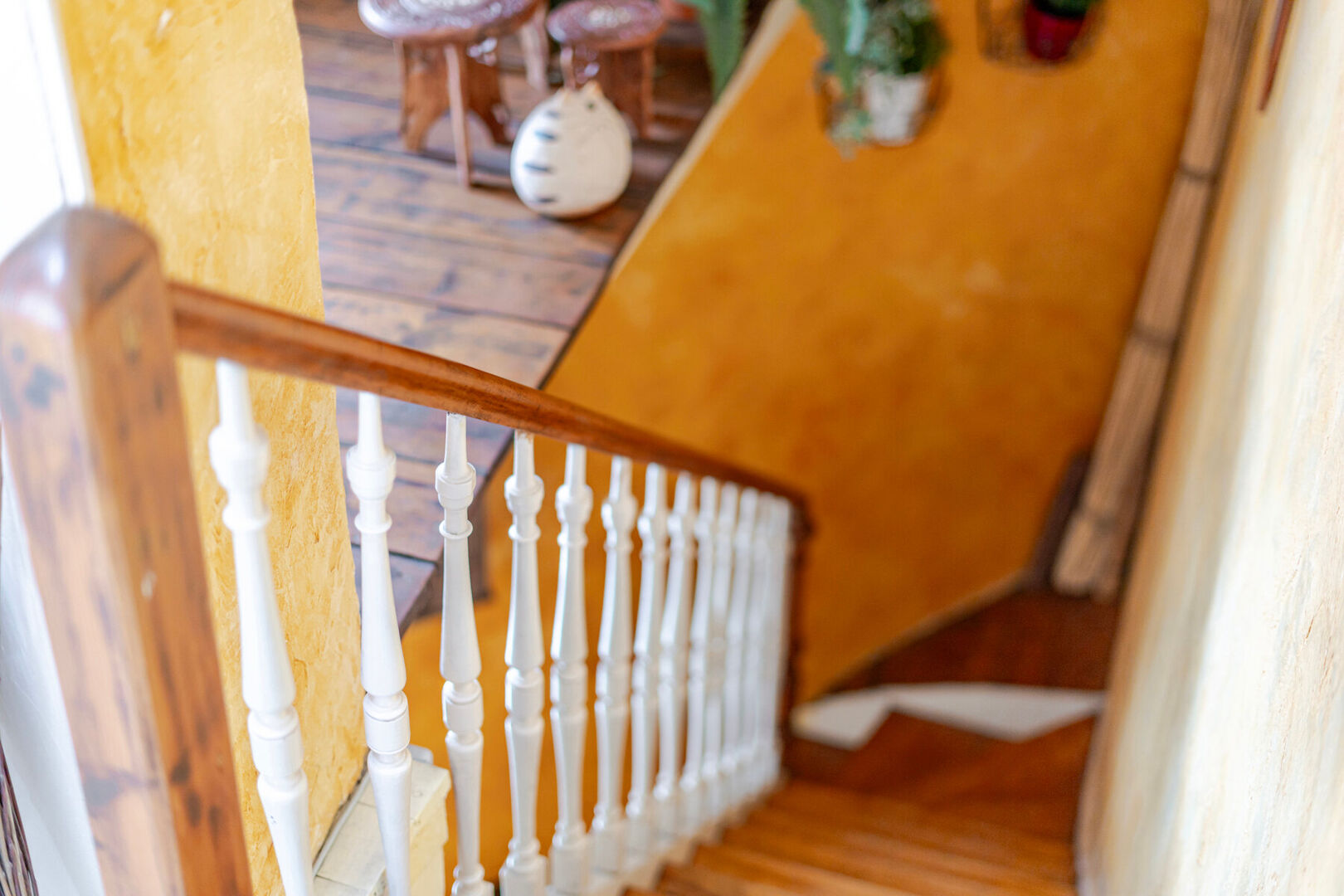De leefruimte op deze verdieping is ruim en functioneel ingedeeld met voldoende plaats voor zowel een eetkamer als een comfortabele zithoek. De houten vloer en de open indeling dragen bij aan een aangenaam wooncomfort. Vanuit de woonkamer is er directe toegang tot het prachtige dakterras van 28 m², uitgerust met een regenwaterciterne.
