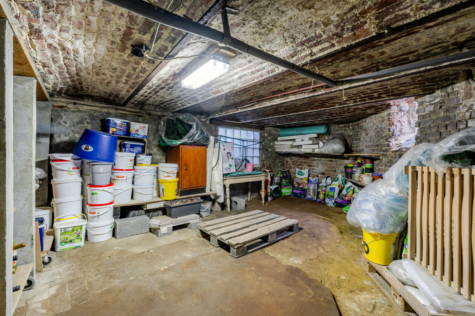 Achteraan de badkamer bevindt zich een extra bergruimte die kan dienen als atelier of werkplaats en die via een aparte deur directe toegang biedt tot de straat.